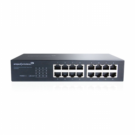 ProSeries 16-Port Gigabit Switch Add an additional 16 wired devices to any network and at gigabit speeds. Built to be an efficient work horse for any network. Rugged metal enclosure to perform in extreme temperatures. Amped Green power saving feature for energy efficiency. Rackmount kit included for 19 switch rack.
